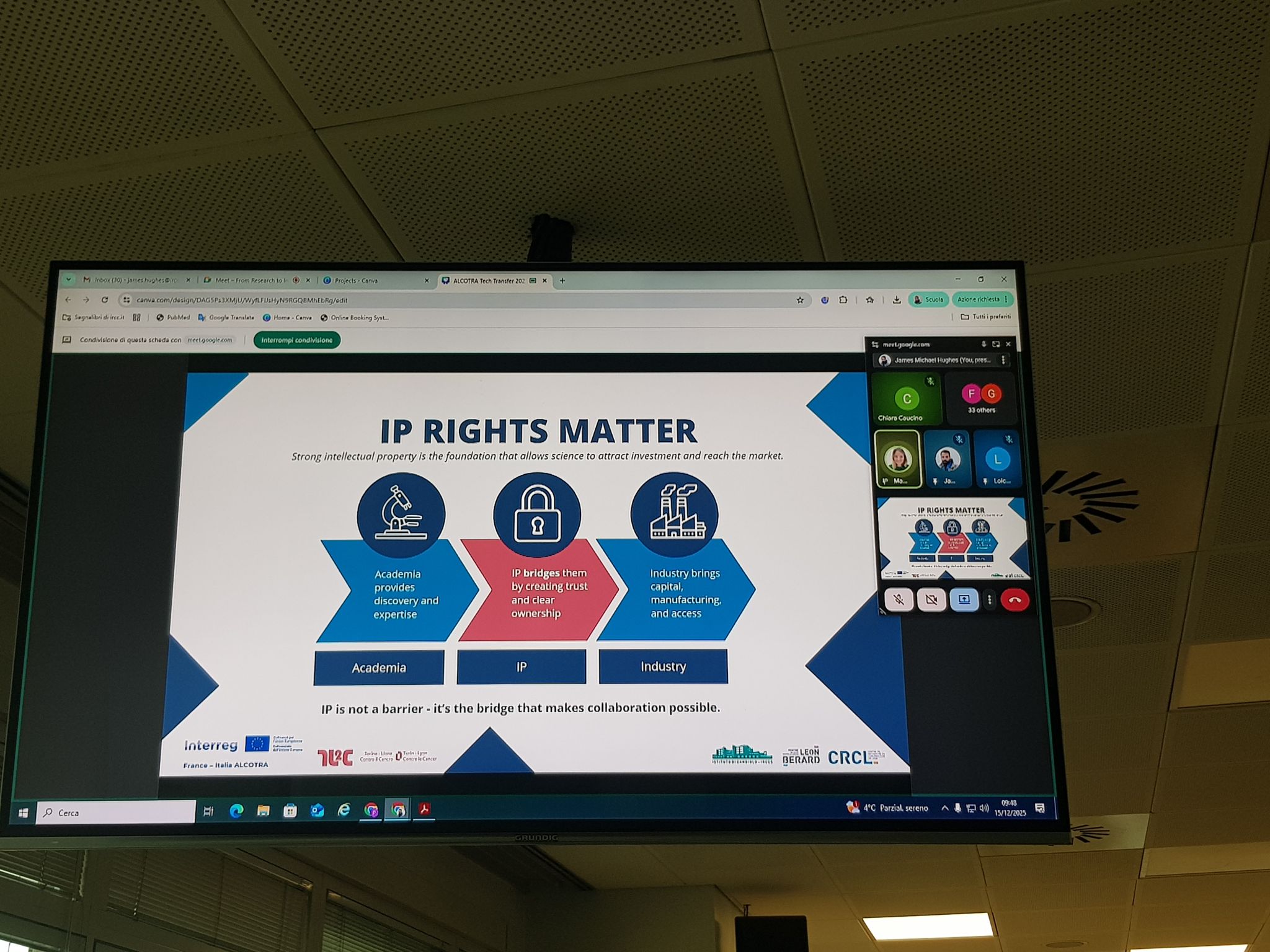 L’evento, realizzato in modalità ibrida, in presenza e online, ha garantito la presenza di oltre 75 partecipanti, assicurando una collaborazione dinamica, grazie all’alternanza degli interventi da parte dei due responsabili dei TTO presso i rispettivi Centri, (James HugheseLoic SEBILEAU), e a specifici approfondimenti curati daAPRE – Agenzia per la Promozione della Ricerca Europea,Camera di commercio di TorinoeBioindustry Park Silvano Fumero S.p.A. Società Benefit.